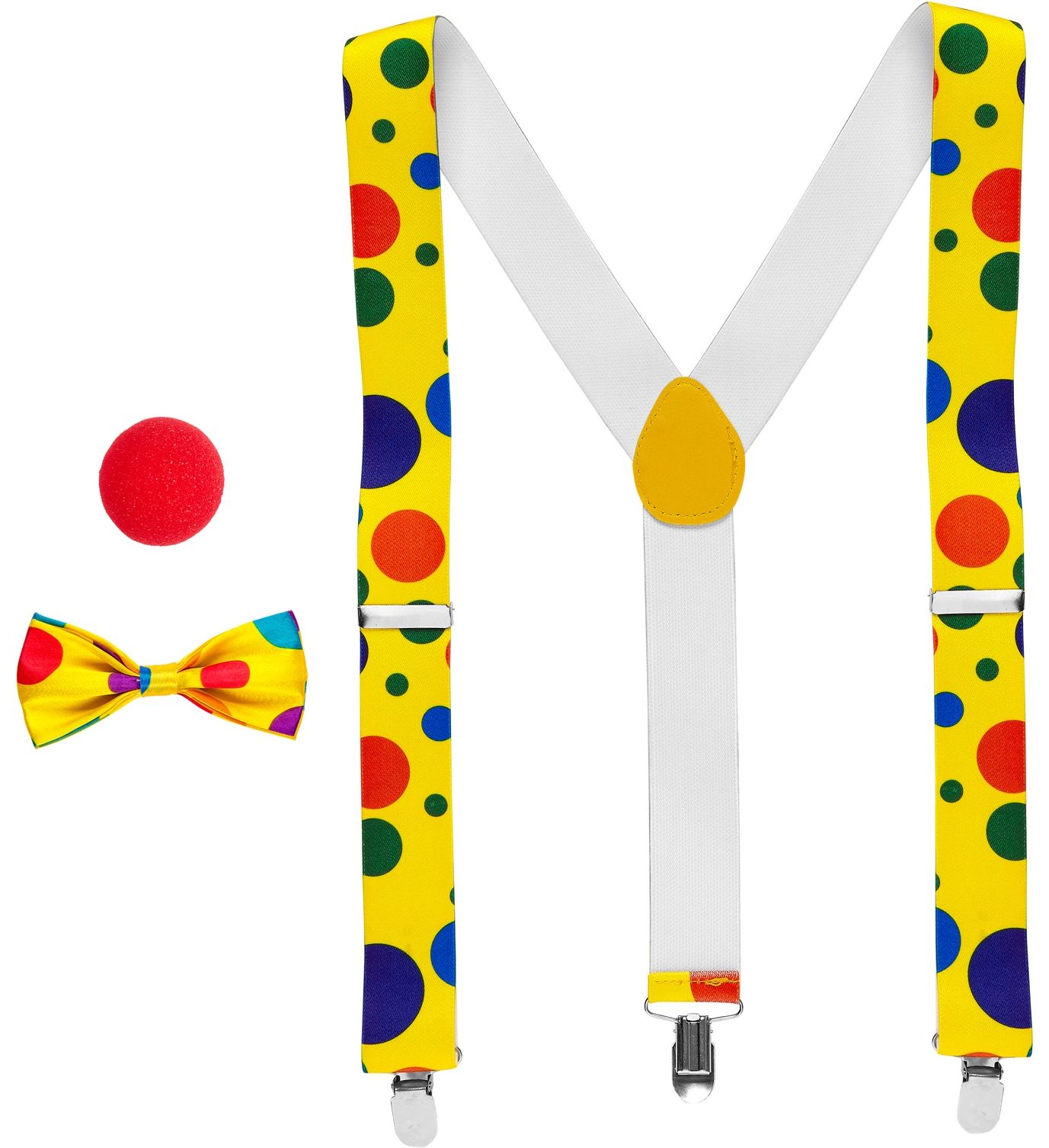 - Pakketinhoud: Bretels, vlinderstrik en neus